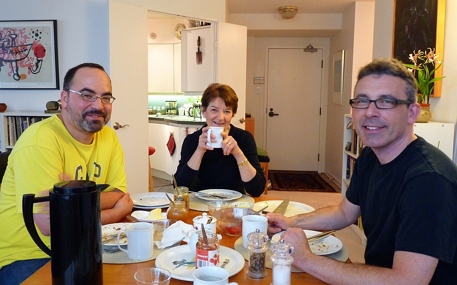 Paul and Jonathan returned for a welcomed second visit in October. And our building greeted them with a 2:00 am flood in our guest suite. Fortunately, nothing of theirs was damaged, but it did mean that they had to move to a nearby hotel. Given the age of our building, some problems are inevitable. Management is generally good and they did have the guest suite back in operation within only a few weeks. With it all, it was a good visit. We even learned a bit about the protocol followed by the Occupy movement. Paul was/is an enthusiastic supporter. The Toronto Occupy camp had closed down just before they arrived or we might not have seen much of Paul - he would have been down with our Occupy campers.