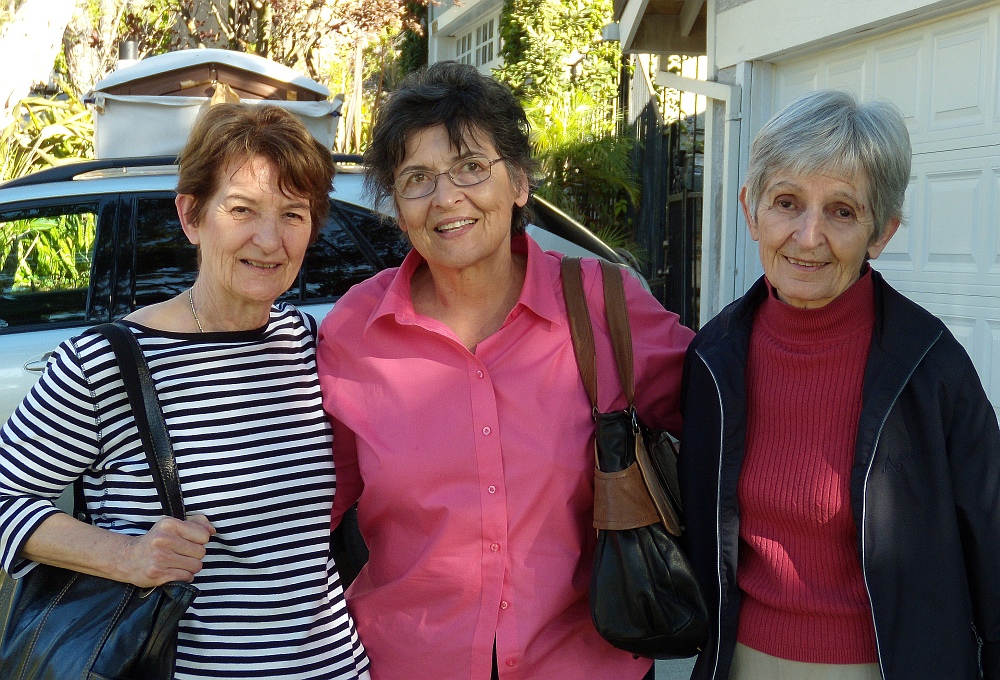 Mira went to California with her sisters in April. One sister, Doris, lives in Baltimore, the other, Marie, in California. They started in Bakersfield where Marie lives, but spent several days on the coast. They even reconnected with a cousin that none of them had seen in 60 years. And they returned for a visit to Cambria, the costal town that was the last home of their parents. It was a time for connecting and reconnecting. (The photo shows Mira, her California sister Marie, and her Baltimore sister Doris).