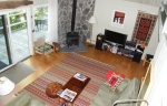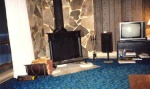 cottage, showing the fireplace and the "great" green shag rug. Pay