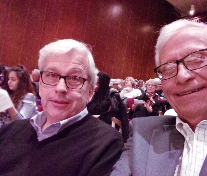 For another year we subscribed to Music in the Afternoon. These chamber music concerts are now in their 121st season. We continued our practice of joining Joe and Anne Cira for lunch before the concert at Jacque’s Omelette, an informal French bistro in Yorkville, a short walk away for the concert hall. Joe and I continue with our occasional lunches to address the world’s problems. Solutions have become ever more illusive, but the lunches remain enjoyable. All three Weirs – Claudette, Doug and Remy (their wonderful Ganaraskan dog) – again visited us at the cottage this summer. [Image (selfie) of Joe and me at one of the concerts.]