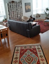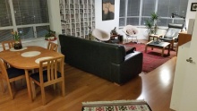 her wish – our condo now has new hardwood flooring to replace the old wall-to-wall carpet. It almost looks like a new condo, but everything wasn't back in place until Boxing Day. And there are still odds and ends to finish up. (Click on any photo to get to an enlarged version; return with your browser. Photo on left is finished living room.) Inevitably, this letter was delayed.