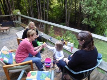 with them, and Mira and Susie often go to events that do not sufficiently interest Mike or me. Mira's old “construction” friends, including the two year old daughter of Coleen spent the day with us at our cottage(photo on left). And Doug and Claudette, including their dog Remy, visited us in the country where all five of us explored a newly opened trail a few miles from our cottage.