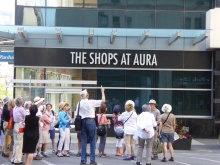 offered a Yonge Street LIFE walk. The street is Upper Canada's oldest, having been established for military purpose before there was a Toronto. It's now the focus of intense developer speculation. Within just a few blocks of our downtown condo there are in excess of 10,000 new condo units just completed, under construction or approved for construction. With each new building valued in the hundreds of millions, the politics can be intense. (photo of me pointing to the new 75 storey condo tower just down the street from us)